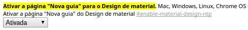 - Digite chrome://flags/#enable-material-design-ntp na barra de endereços do navegador e pressione ENTER;