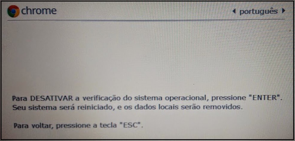 Não se desespere, aguarde 30 segundos, será dado 2 bipes, e o Chromebook será iniciado normalmente.