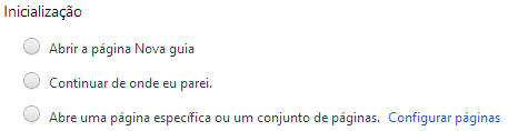 chrome://settingsLocalizem a guia “Inicialização” e então escolha uma das opções para ser a página inicial do Google Chrome. Vejamos as opções abaixo: